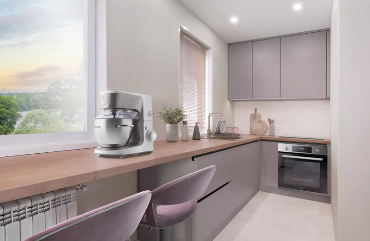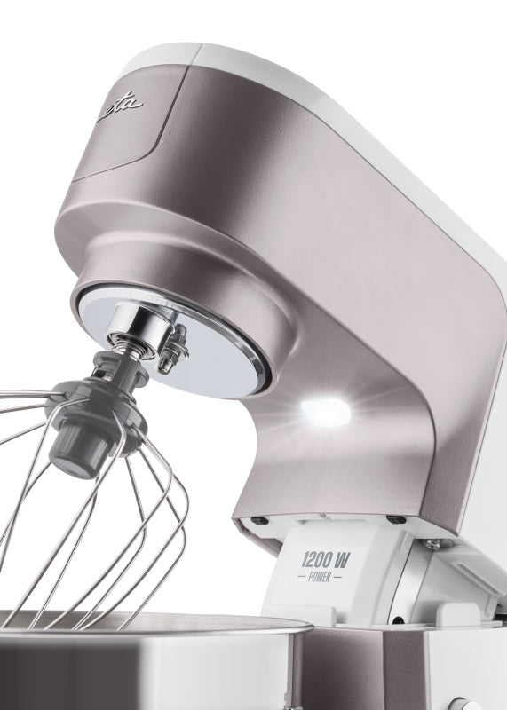 Příslušenství v balení: bubínkové struhadlo, flexi metla, hnětací hák, mlýnek na maso, průhledný kryt mísy, šlehací metla