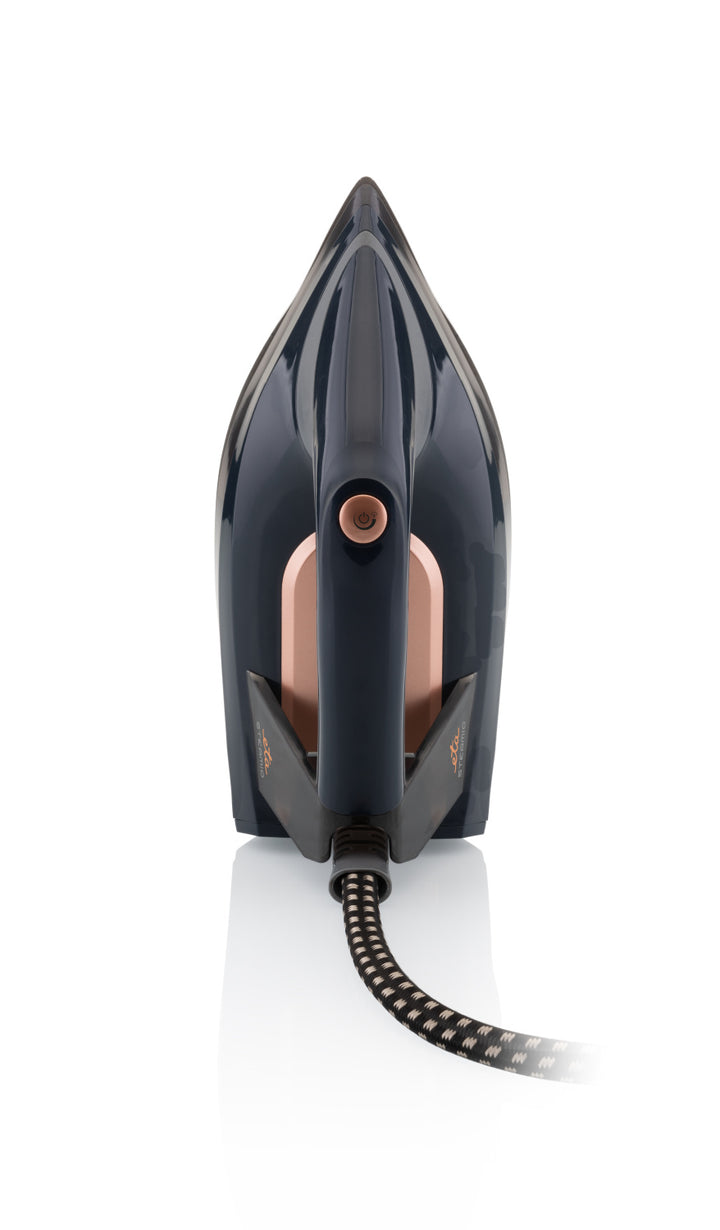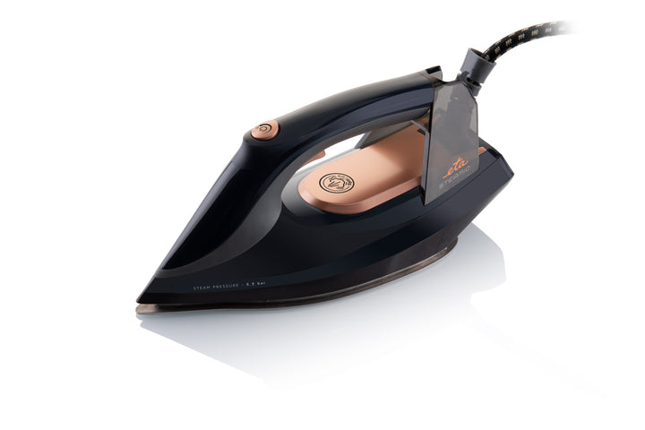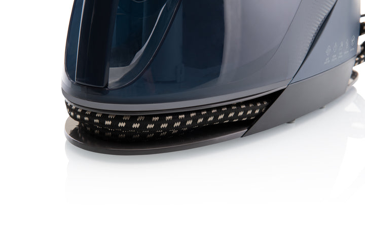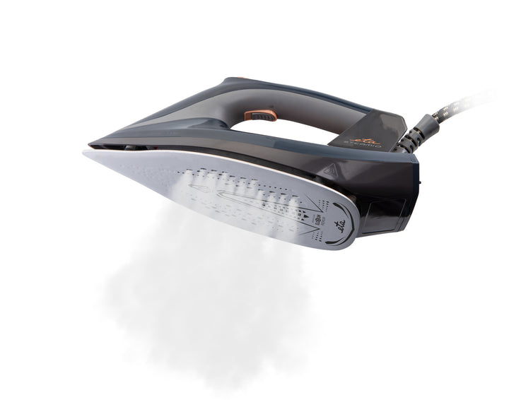 Likalnik s hitro ogrevalnim parnim generatorjem, vhodno močjo 2200 W, parni tlak do 5,5 bara in edinstveno likalno površino Eloxium Plus