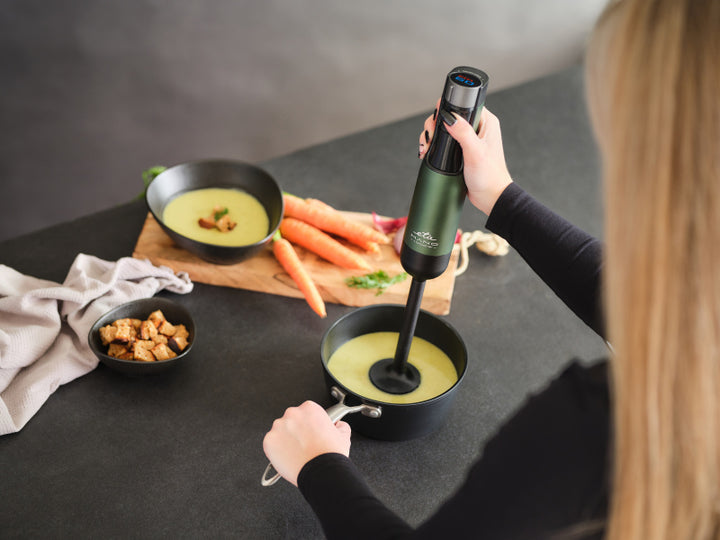 Multifunkční tyčový mixér ETA Mano je naprostou nezbytností v každé moderní kuchyni. Ať už chcete vytvořit sametové omáčky, husté polévky, svěží dipy, osvěžující smoothie nebo nadýchaný sníh, mixér ETA Mano vám bude vždy po ruce.